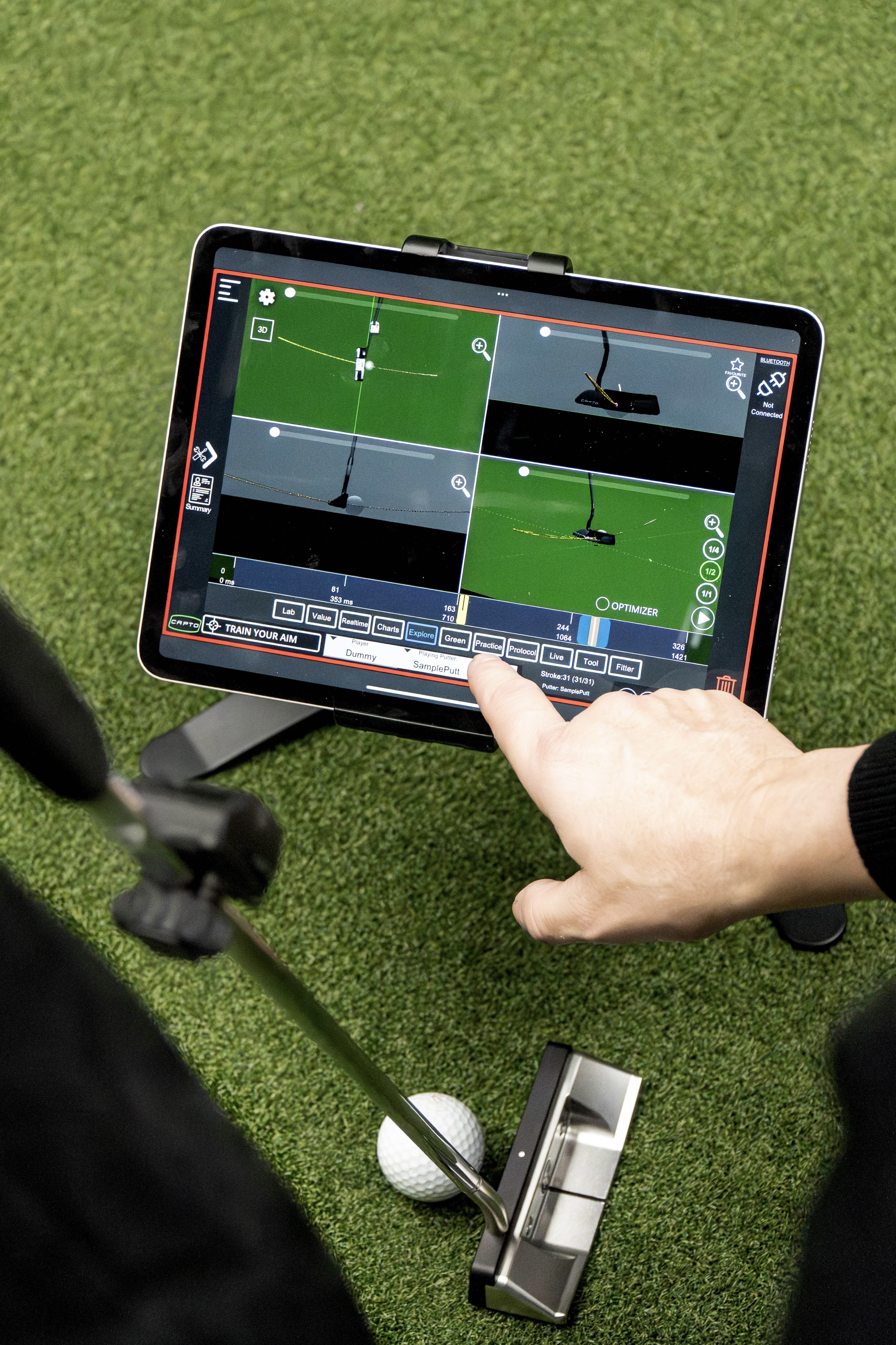 Vi kalibrerar din putter mot dina ögon, inte mot rummet. När du litar på ditt sikte här inne, vet vi att det håller när det väl gäller där ute.